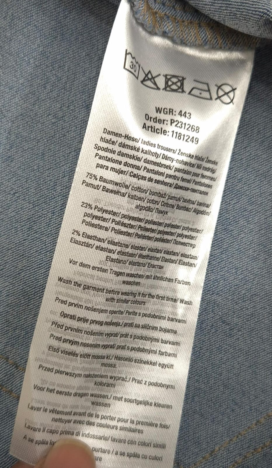 These high-quality ladies' jeggings are available in two trendy shades of blue and in sizes ranging from 36 to 48 cm. We have a substantial stock of 100 124 pieces ready for immediate sale, offered at an excellent FOB price.
