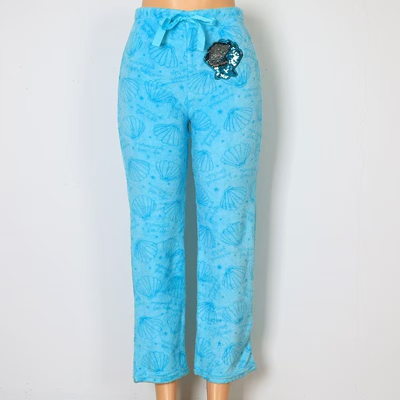 Ladies Printed Fleece Homewear Long Pants