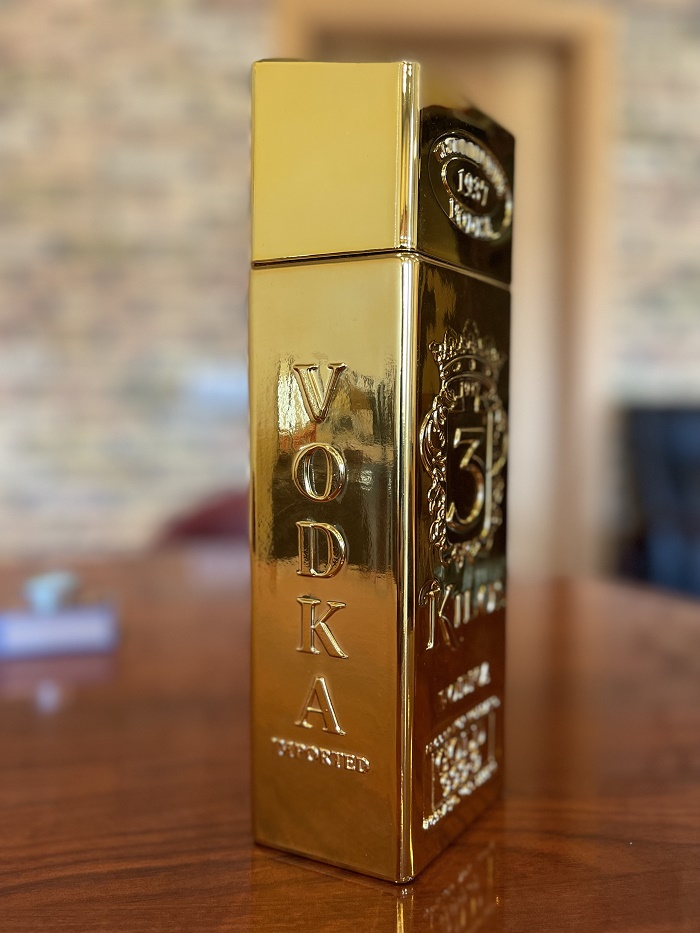 999.9 Premium Vodka is optically based on a 3-kilo gold bar.