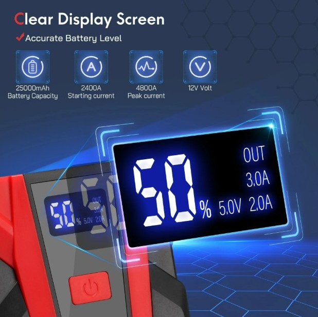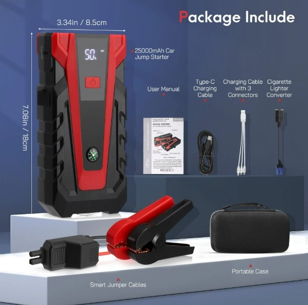 4800A Peak Car Battery Jump Starter 25000mAh Battery Jump Box for Car up to 10.0L Gas or 8.0L Diesel Engine with LED Light