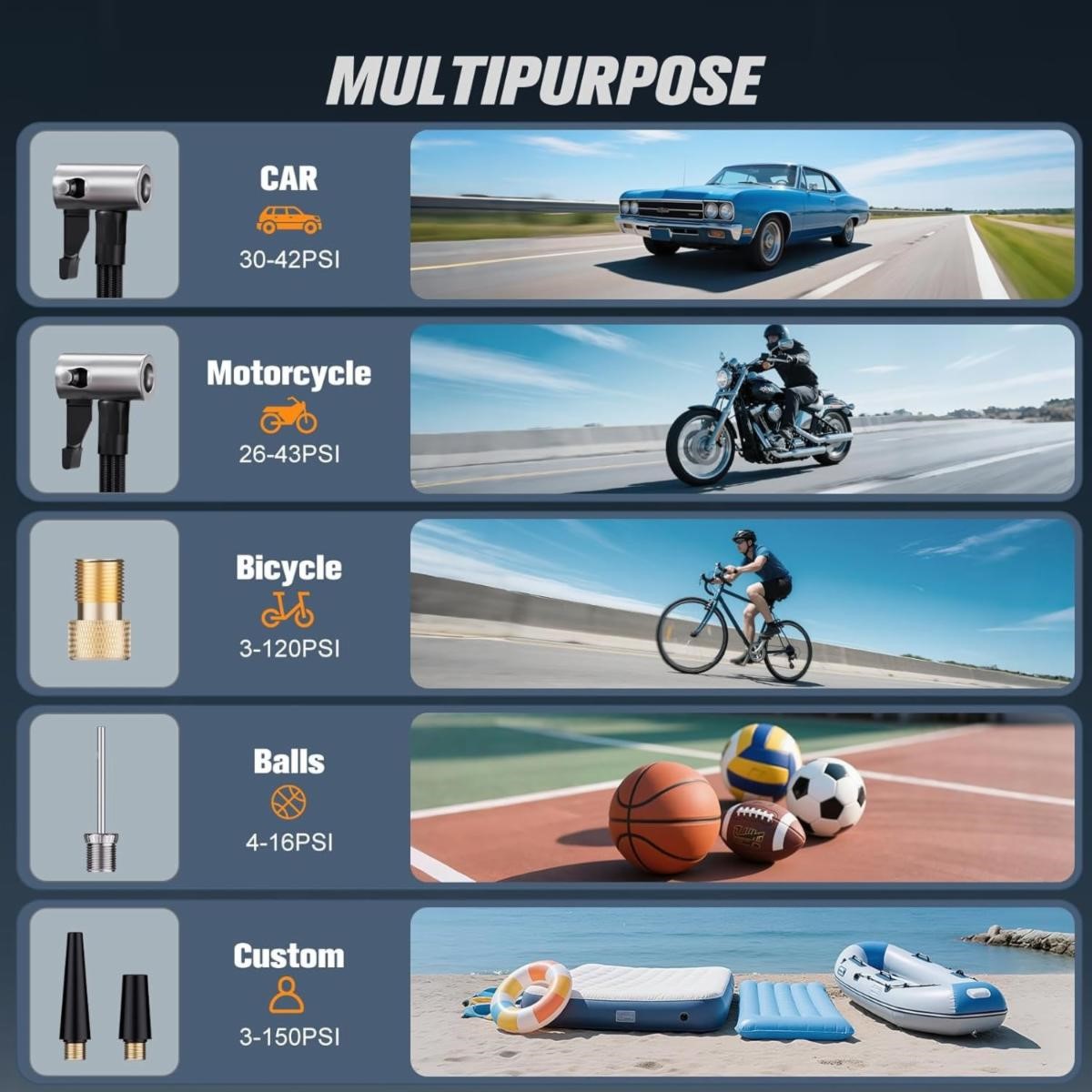 1500mAh×4 Battery, 15 Emergency Vehicle Starts 150PSI Tire Inflator, LED Light/SOS (14.8V 6000mAh)