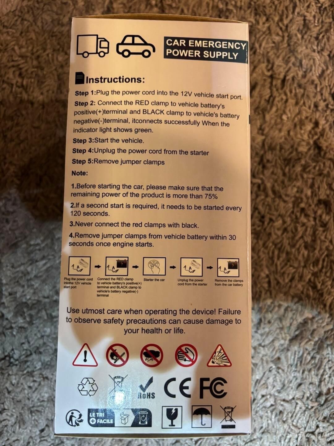 Portable Jump Box with 3 Modes Flashlight and Jumper Cable