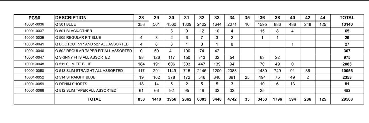 Levi's jeansTotal: 29 568 pcs.MOQ: 5 000 pcs.Price: 28.00$ pcs. EXW: FL, USAFirst grade qualityReady to deliverSanitized evidence