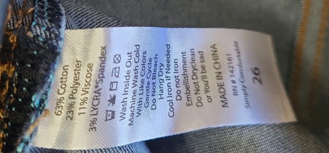 Material: 63% Cotton, 23% Polyester, 11% Viscose, & 3% Spandex
