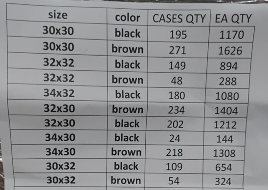 Size: 30 x30, 32x 30, 32 x 32, 34 x30, 34 x 32