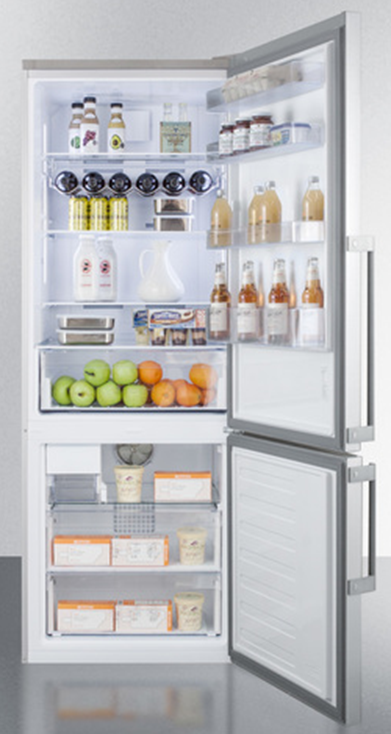 SUMMIT STAINLESS STEEL 27" COUNTER DEPTH REFRIGERATOR, ROHL WIDESPREAD LAVATORY FAUCETS, AMERICAN STANDARD BATHROOM SINK - CADET EDITION, NIAGARA STEALTH SINGLE FLUSH TOILET, NUVO LIGHTING BLINK PRO 9" WIDE FLUSH MOUNT