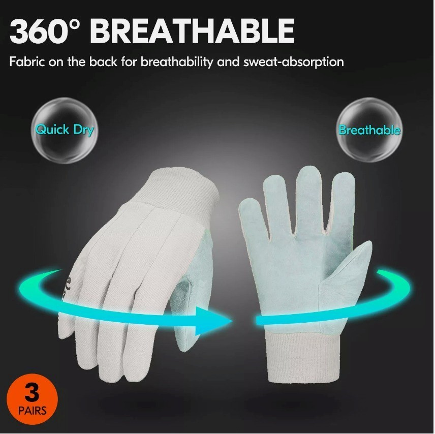Vgo 3Pairs Cotton and Cow Split Leather Work GlovesTotal: 2 020 pack of 3 pairsPrice take all: 1.50$ per pack of 3 pairsEXW: LA, USA
