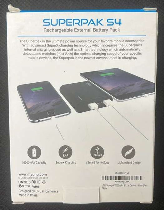 UNU Superpak 10000mAh S4 Portable Battery Pack USA