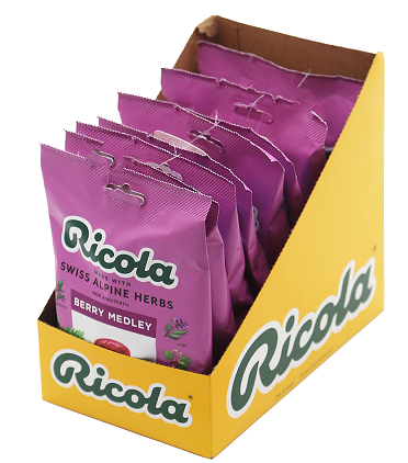 Ricola Berry Medley19 ct bagCase pack: 48Restriction: Please check the fileQuantity: 482 256 unitsPrice take all: 1.29$ pcs. EXW: NJ, USA