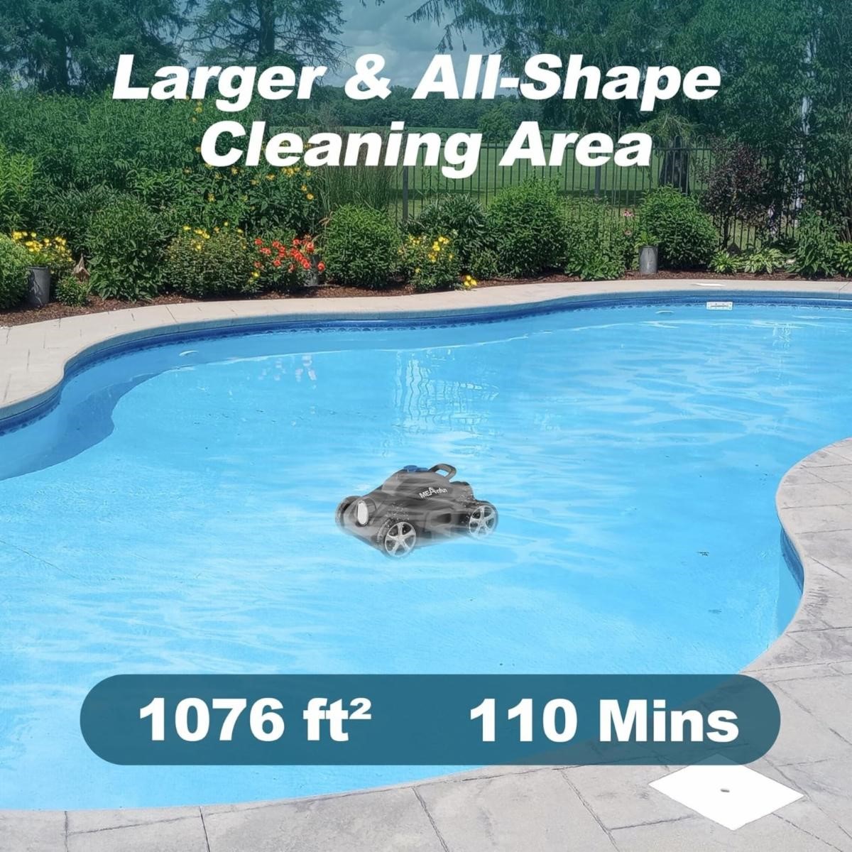 2024 New Cordless Robotic Pool Vacuum Cleaner, Last 110 Mins & Clean 1076 Sq. Ft for Above Ground and Inground