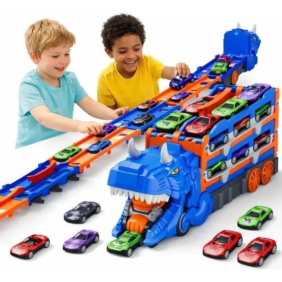 Transport Dinosaur Truck Kids Toys With 12 Cars USA