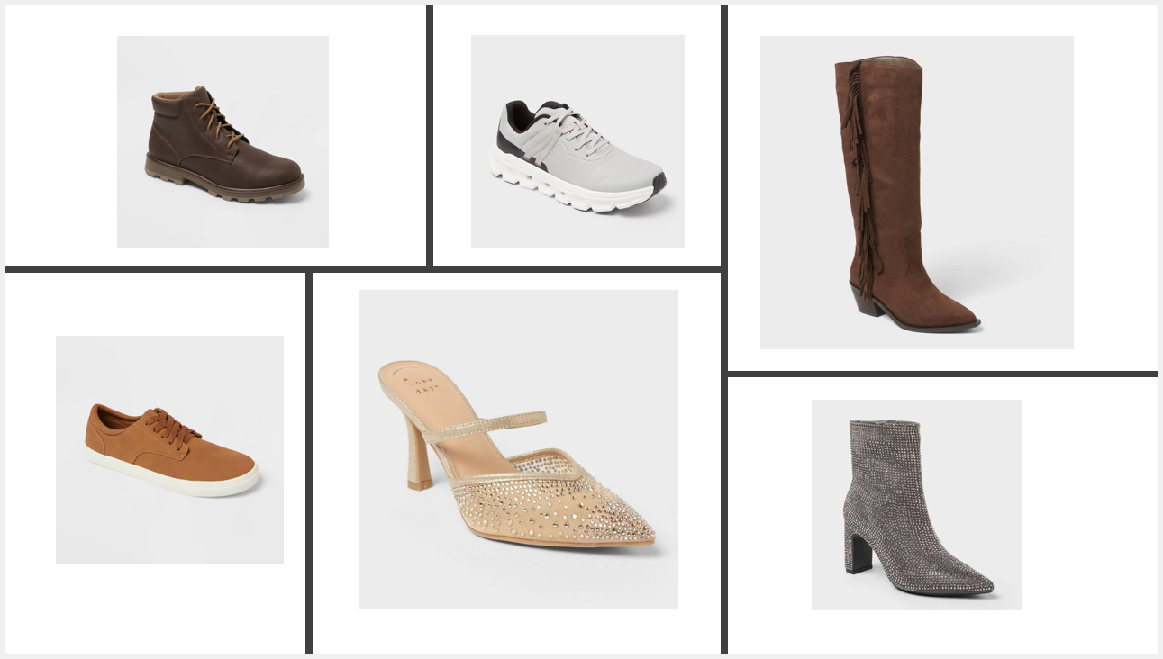 T-shirts, shoes, pants, bags