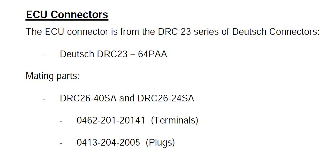 For connector reference, please note that Deutsch is now part of TE Connectivity.
