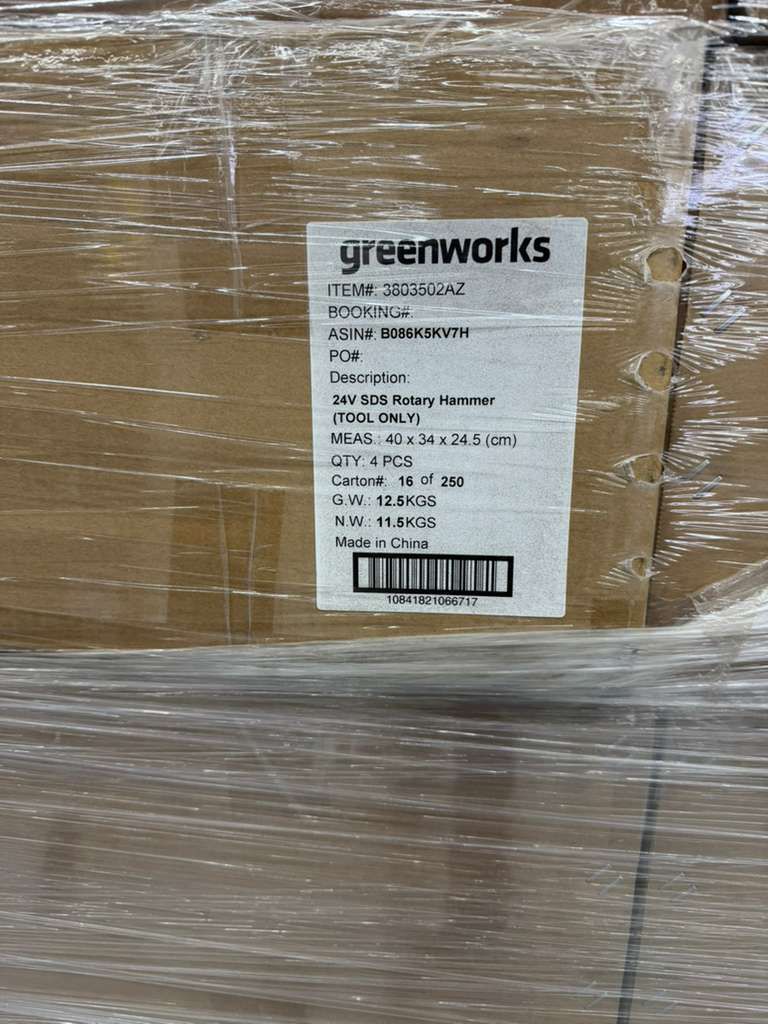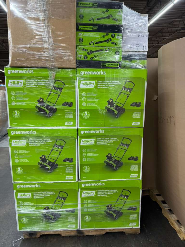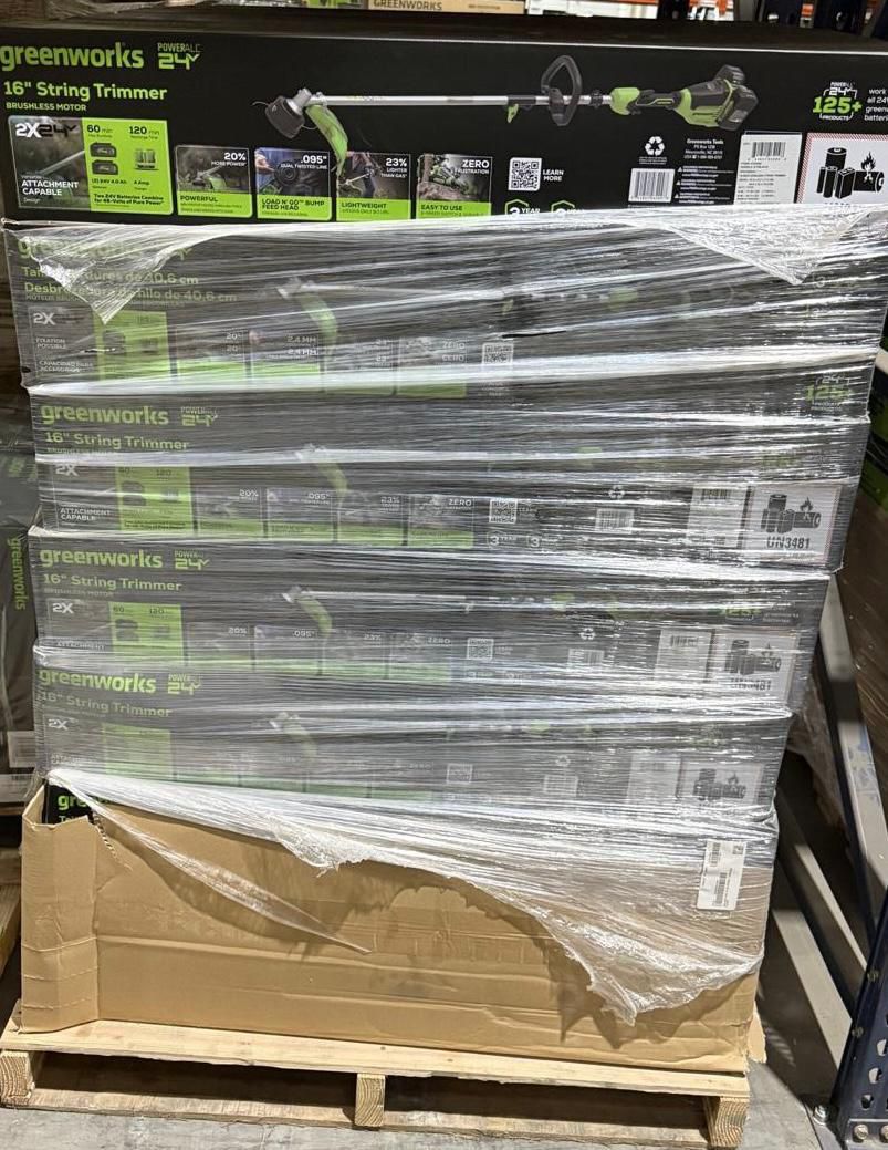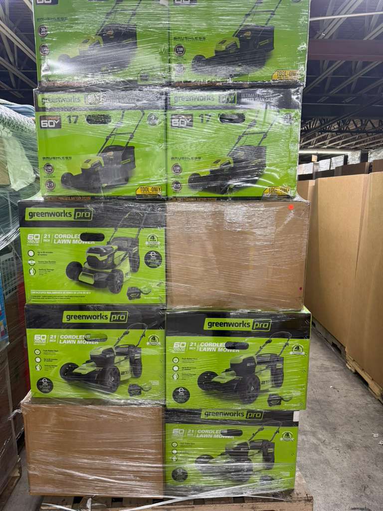 Green Works - Outdoor Tools2 TrailersTotal: 2 379 unitsRetail: 525 793.58$Price take all: 160 000$FOB: NC, USA