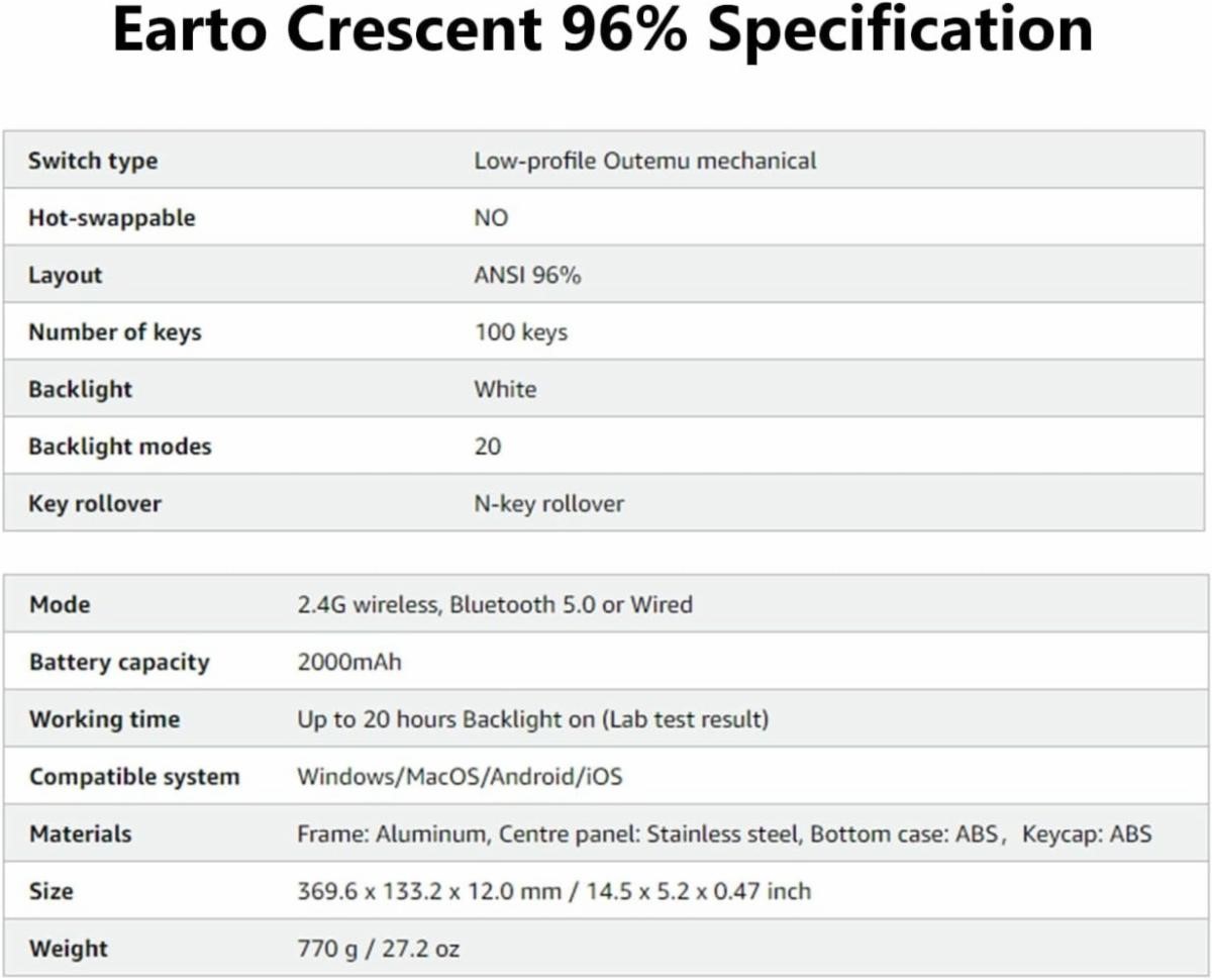 Earto CT100 Wireless Mechanical KeyboardBluetooth/2.4G/ Wired, White LED BacklightTotal: 380 unitsPrice take all: 19.50$ pcs.FOB: LA, USA