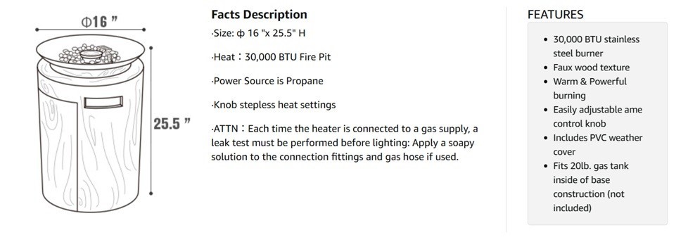 Bluu 16 Inch 30000BTU Portable Round Propane Faux Wood Fire PitTotal: 500 unitsPrice take all: 59.50$ pcs.FOB: LA, USA